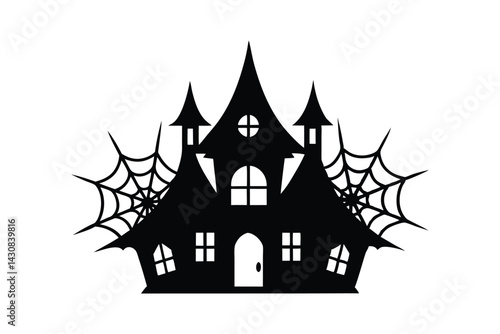 Silouette art illustration of a haunted house with spiderwebs.eps