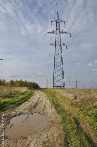 power, electricity, energy, sky, tower, electric, pylon, road, cable, line, high, voltage, electrical, blue, field, industry, line, wire, steel, landscape, summer, nature, powerline, technology, green