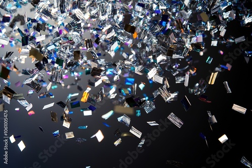 confetti, silver, explosion, dark, background, celebration, shimmer, festive, decoration, glistering, party, sparkle, texture, metallic, flying, shiny, fun, event, holiday, bright, colourful, joyous, entertainment, burst, abstract, pattern, design, motion, dynamic, energy, airborne, cheerful, excitement, adornment, festival, happy, jubilation, brilliancy, new year, christmas, copy space, empty space, image