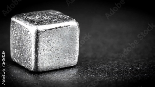 Silver Cube Reflects Soft Light on Dark Surface. AI Generated