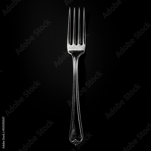 fork, silverware, cutlery, eating, dining, meal, food, kitchen, utensil, eatery, table, silver, metal, shiny, black, background, isolated, simple, minimalist, design, graphic, object, still life, monochrome, black-and-white, classic, vintage, traditional, elegant, formal, clean, sharp, closeup, macro