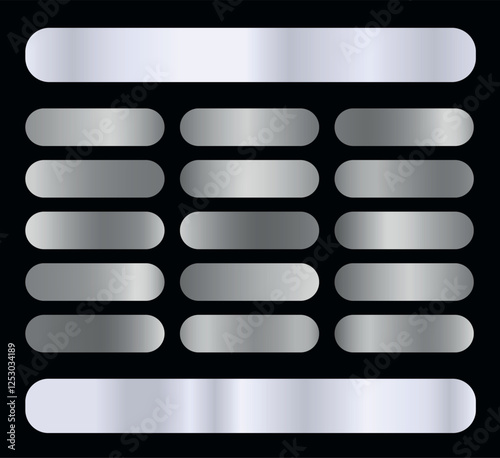 silver, gradient, metal, texture, background, shiny, metallic, chrome, steel, aluminium, grey, grey, design, abstract, illustration, vector, set, collection, pattern, material, template, web design, graphic design, buttons, interface, light, dark, shade, tone, colours, palette, style, effect, glossy, bright, reflective, smooth, modern, elegant, luxury, premium, high-quality, realistic