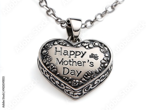 Silver Heart Pendant Focused on Engraved Face for Mother’s Day Celebration