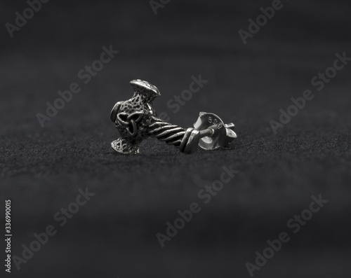 Silver jewelry. Stud Earring. Silver Thor's Hammer. Occult jewelry.
