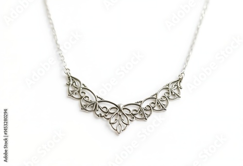 jewellery, accessory, silver, necklace, white background, delicate, intricate, detail, closeup, design, fashion, style, trendy, chic, elegant, luxury, hand-made, craftsmanship, gemstone, pendant, chain, link, clasp, ornament, decoration