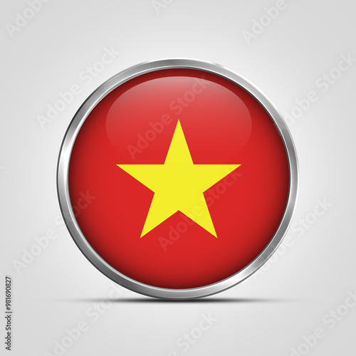 silver plate with glossy flag. Vietnam flag stamp. made in stamp isolated in white background. royal, allegiance, symbol, minimal, vector, 3d, icon, illustration.