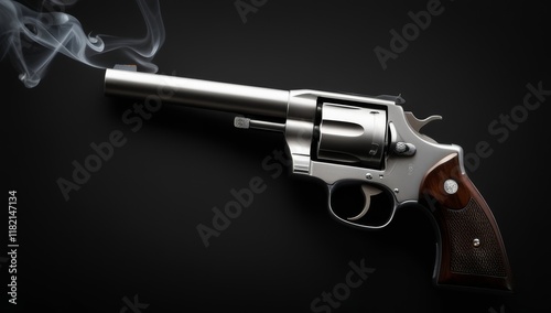 revolver, gun, weapon, smoke, crime, danger, western, murder, classic, handgun, firearm, handgun, barrel, trigger, metallic, chrome, silver, black, detective, security, self protection, munition, shooting, bullet, muzzle, criminal, dangerous, lethal, steel, power, protection, vintage, law enforcement, forensic, mystery, weaponry, firearm, dramatic, dark background, metal, polished, closeup