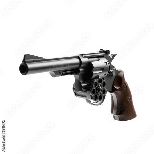 revolver, gun, firearm, weapon, silver, metal, brown, wooden, grip, handle, cylinder, barrel, munition, cartridge, isolated, closeup, detailed, photo, studio shot, armament, self protection, shooting, firearm, weaponry, handgun, handgun, forensic, police, military, security, vintage, classic, antique, western, holster, bullet