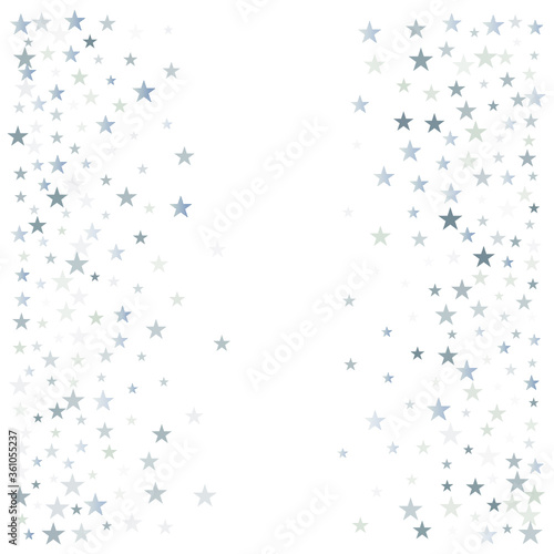 silver stars background, sparkling christmas lights confetti falling isolated on white. magic shining Flying stars glitter cosmic backdrop, sparkle vector border.