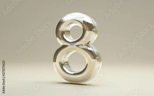 Silver-glass number 8 with subtle reflections on a warm cream background for 8 March International Womens Day