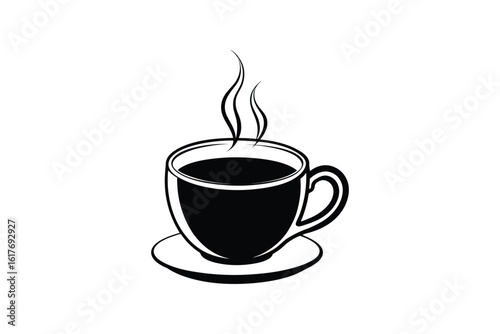 Simple Black and White Illustration of a Hot Cup of Coffee on a Saucer
