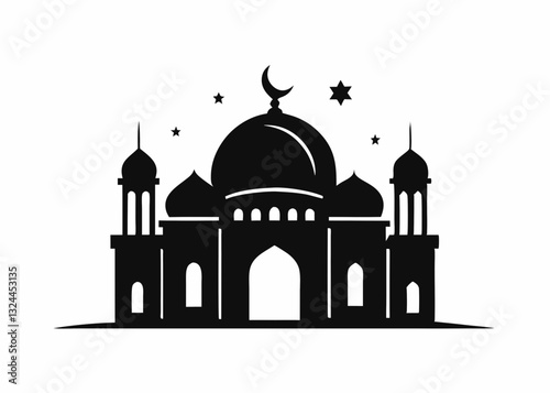 mosque, islam, religion, muslim, faith, arabic, temple, building, silhouette, black-and-white, greyscale, illustration, design, cultural, travel, historic, historical, landmark, architecture, art, graphic, vector, spiritual, peaceful, serene, simple, symbol, middle east, asia, india, pakistan, graphic design, vintage, line art, drawing, icon, religious icon, monochrome, minimalist