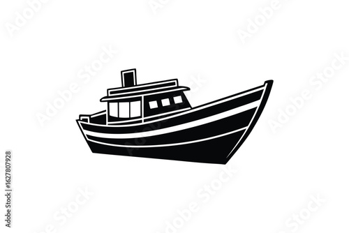 boat, motorboat, vessel, ship, watercraft, yacht, fishing boat, cabin cruiser, small boat, icon, illustration, graphic, design element, black-and-white, monochrome, silhouette, simple, minimal, vector, clip art, isolated, white background, nautical, maritime, ocean, sea, river, lake, travel, transport, water, summer, holiday, vacation, leisure, sport, fishing