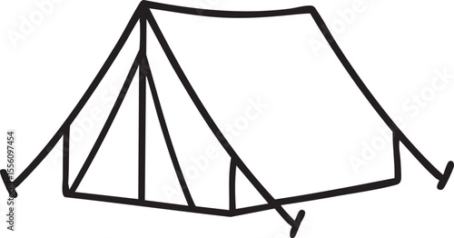 Simple Black and White Line Drawing of a Camping Tent with Visible Support Structure and Ground Stakes