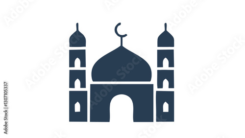 Simple black and white mosque icon with a focus on the dome and prayer hall-06