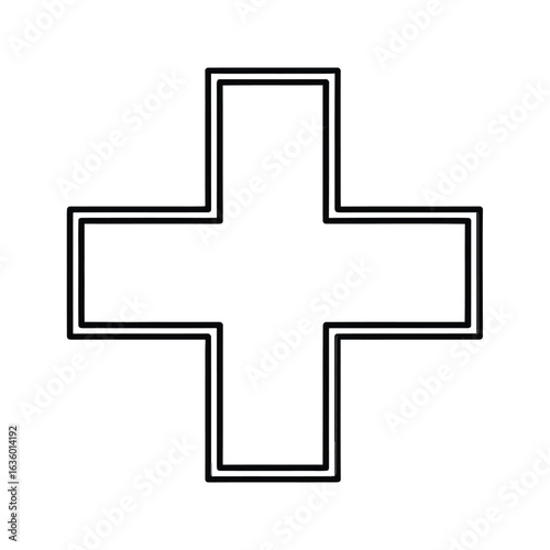 Simple black and white plus sign illustration isolated on white background, perfect for medical, mathematical, or general positive concepts and designs