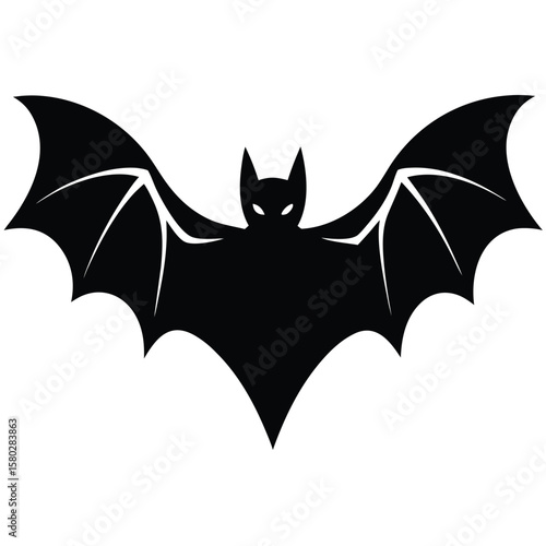 Simple Black Bat Silhouette with Spread Wings on a White Isolated Background
