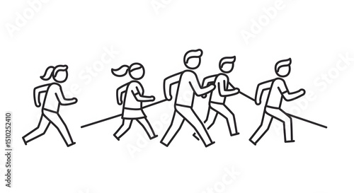 Simple Black Line Drawing of People Walking in a Row in a Minimalist Style