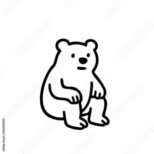 bear, polar, animal, wildlife, cute, cartoon, sitting, outline, black, white, vignetting, drawing, illustration, character, friendly, simple, sketchy, art, line, graphic, fauna, mammal, arctic, nature, design, animal, icon