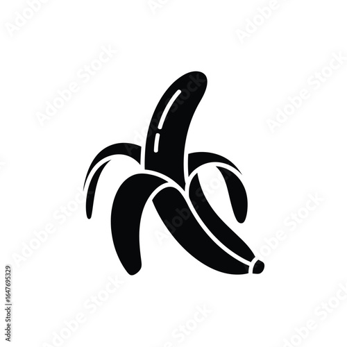 banana, peeled, fruit, food, silhouette, icon, vector, black, and, white, simple, minimalist, drawing, illustration, organic, healthy, tropical, sweet, snack, diet, nourishment, fresh, ripe, isolated, graphic, design, element, symbol, outline, clean