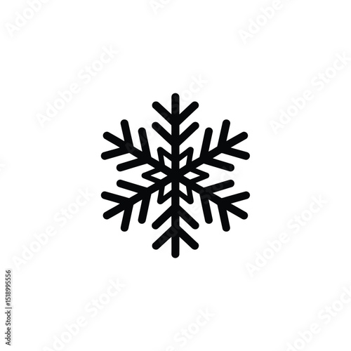 Simple Black Snowflake Design on White Background Winter Holiday Icon