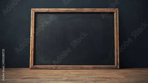 Simple blank blackboard with a smooth and dark texture under ambient light