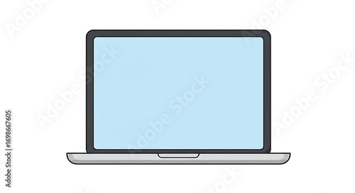 Simple cartoon illustration of an open laptop with a blank blue screen, isolated on a white background.