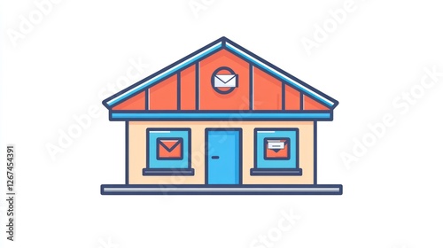 post office, mail, building, house, delivery, envelope, cartoon, illustration, simple, flat, design, office, postal, service, mailbox, shipping, business, modern, exterior, commercial, structure, shipment, front, customer service, postal service, rural, urban, city, town, commerce, retail, shopping, delivery truck, package, courier, logistic, transportation, communication, concept, architecture, small business, local, information