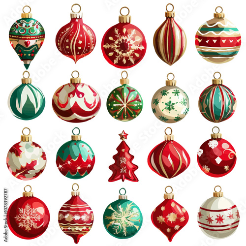 Simple flat 2D icon Christmas ornament set isolated on transparent background, vector, flat design, animation design, vector, flat design, simple flat 2D icon, design, clipart, bauble set