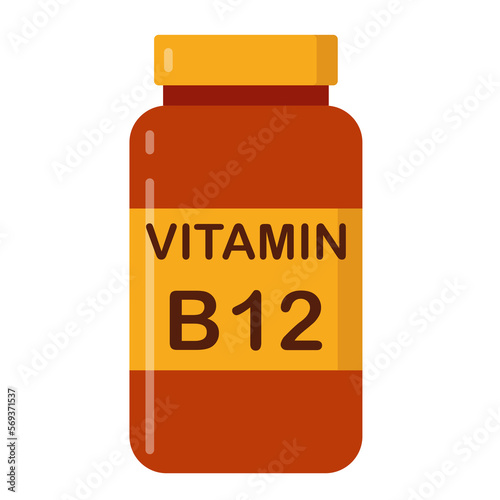 simple flat brown vitamin B12 drug bottle with yellow lable