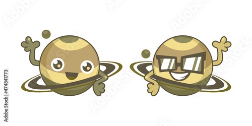 Simple Funny Isolated Happy Smiling Saturn Planet Cartoon Characters