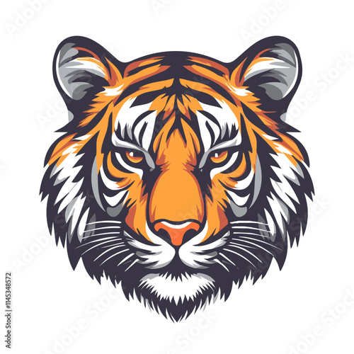 Simple Geometric Tiger Head – Bold Vector Illustration with Original Colors