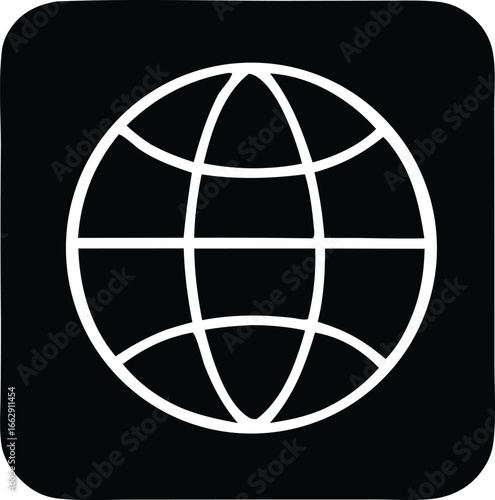 Simple icon of a globe representing the internet or global connectivity set against a solid dark square background
