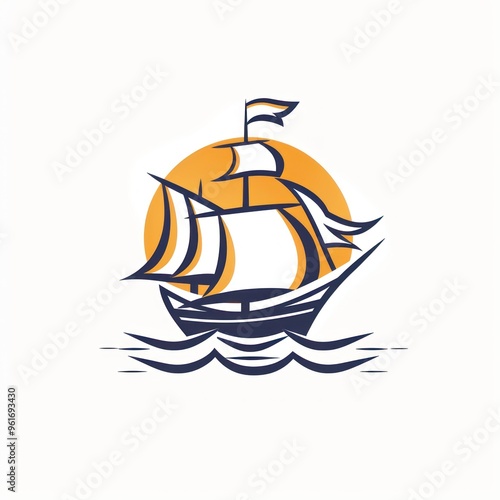 ship, sailboat, ocean, water, sea, boat, nautical, marin, sunset, sun, travel, journey, adventure, sailing, cruise, vacation, seafaring, maritime, transportation, summer, nature, illustration, graphic, design, vector, flat, icon, logotype, symbol, emblem, signs, artwork, abstract, simple, minimalist, modern, graphic design, design element, clip art