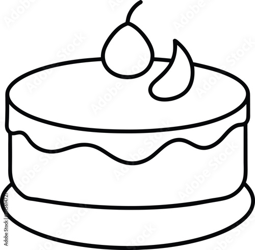cake, chocolate, dessert, food, sweet, pastry, baked, good, illustration, drawing, vignetting, line, art, outline, minimalist, simple, clean, graphic, design, element, icon, isolated, white, background, bakery, treat, confectionery, single, delicious, vector