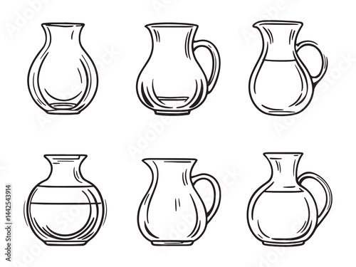 vase, glasses, bottle, decoration, illustration, object, design, container, drink, ceramic, art, vector, set, ceramic, flower, icon, flower, colours, pot