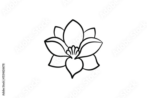 flower, bloom, blossom, floral, line art, outline, black-and-white, simple, elegant, minimalist, botanical, nature, design element, illustration, graphic, vector, drawing, vignetting, bud, plant, spring, summer, beauty, decoration, symbol, icon, logotype, white background, isolated