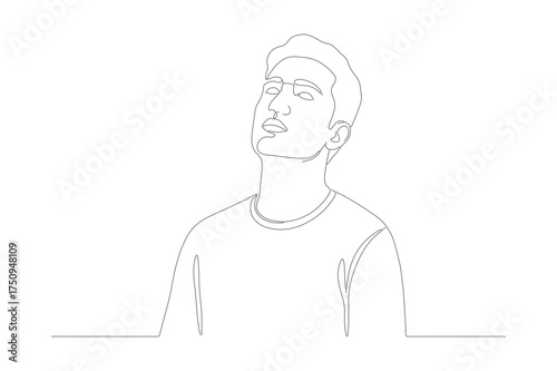 man, male, line art, outline, young, upward, looking, person, human, boy, teenage, portrait, illustration, art, design, simple, minimalist, casual attire, t-shirt, head, face, one person, monochrome, white background, contemporary, style, artistic, expression, contemplative, hopeful, positive, dream, aspiration, imagination, direction, up high, sky, future, lifestyle, isolated, single line, vignetting, graphic