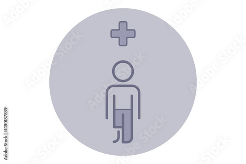 Simple line icon of person with prosthetic leg, symbolizing healthcare advancements and support for individuals with limb loss. Accessibility and assistance concept