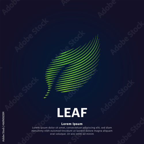 simple logo leaf Illustration in a linear style. Abstract line art green leaf Ecology Logotype concept icon. Vector logo leaf color silhouette on a dark background. EPS 10