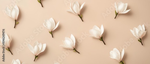 Simple magnolia flower repeated on a soft beige background, minimal and stylish