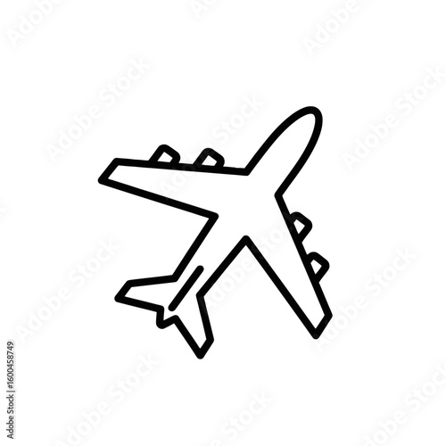 aeroplane, travel, flight, transportation, icon, outline, symbol, plane, aviation, journey, air, aircraft, tour tourism, fly, design, voyage, passenger, airliner, silhouette, illustration, graphic, commercial, landing, take-off, wing, tail, jet, black, white, sky, aerodrome, departure, arrival, vacation, signs, shape, simple, minimal, drawn, style, element, pictogram, line, object
