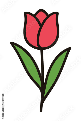 tulip, flower, red, green, leaf, plant, bloom, blossom, spring, nature, floral, garden, natural, botanical, icon, symbol, graphic, illustration, vector, simple, minimal, outline, vibrant, isolated, white background, beauty, fresh, growth, botany, decorative, design element, season, park, gift, love, elegance, purity
