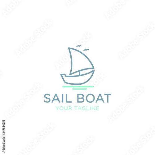 Simple Sailboat dhow ship line art logo design. Traditional Sailboat from Asia / Africa