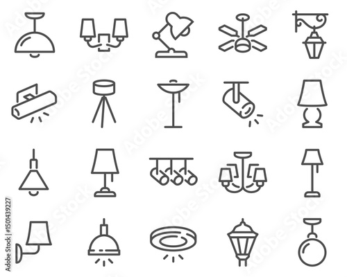 Simple Set of Lamps Related Vector Line Icons. Contains such Icons as Table Lamp, Floor Light, Spotlight and more