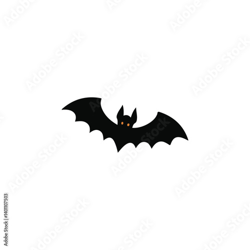 Simple Silhouette of a Flying Bat against a White Background.A stylized, black silhouette of a bat in flight against a plain white background.