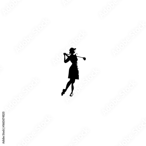 golfer, logotype, stencil, simple, lady, golf, playing, black, white, background, solid, silhouette, minimalist, sport, icon, vector, design, clean, athlete, female, swing, club, ball, emblem, badge, emblematic, symbolic, linear, outline, contour, sharp, defined, bold, contrast, geometric, modern, classic, elegant, athletic, active, competition, tournament, fitness, recreation, hobby, passion, training, precision, skill