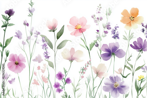 flower, spring, watercolor, plant, wild, nature, blossom, garden, fresh, meadow, summer, delicate, aquarelle, frame, beauty, march, elegant, border, copy space, grass, leaf, fragility, field, vignetting, illustration, easter, mother's day, bright, wedding, flora, bloom, different, card, art, april, isolated, decoration, season, wallpaper, pink, purple, blue, simple, colourful, botany, paint, invitation