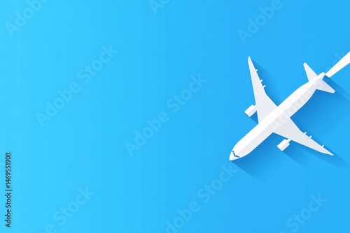 aeroplane, plane, aircraft, flight, travel, blue, white, paper, shadow, graphic, design, minimalist, illustration, icon, symbol, modern, simple, background, sky, topview, vector, art, digital artwork, graphic design, three-dimensional, poster, flier, template, aviation, transportation, tour tourism, business, commercial