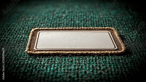 Simple white label resting on a vibrant green background creating a minimalistic composition